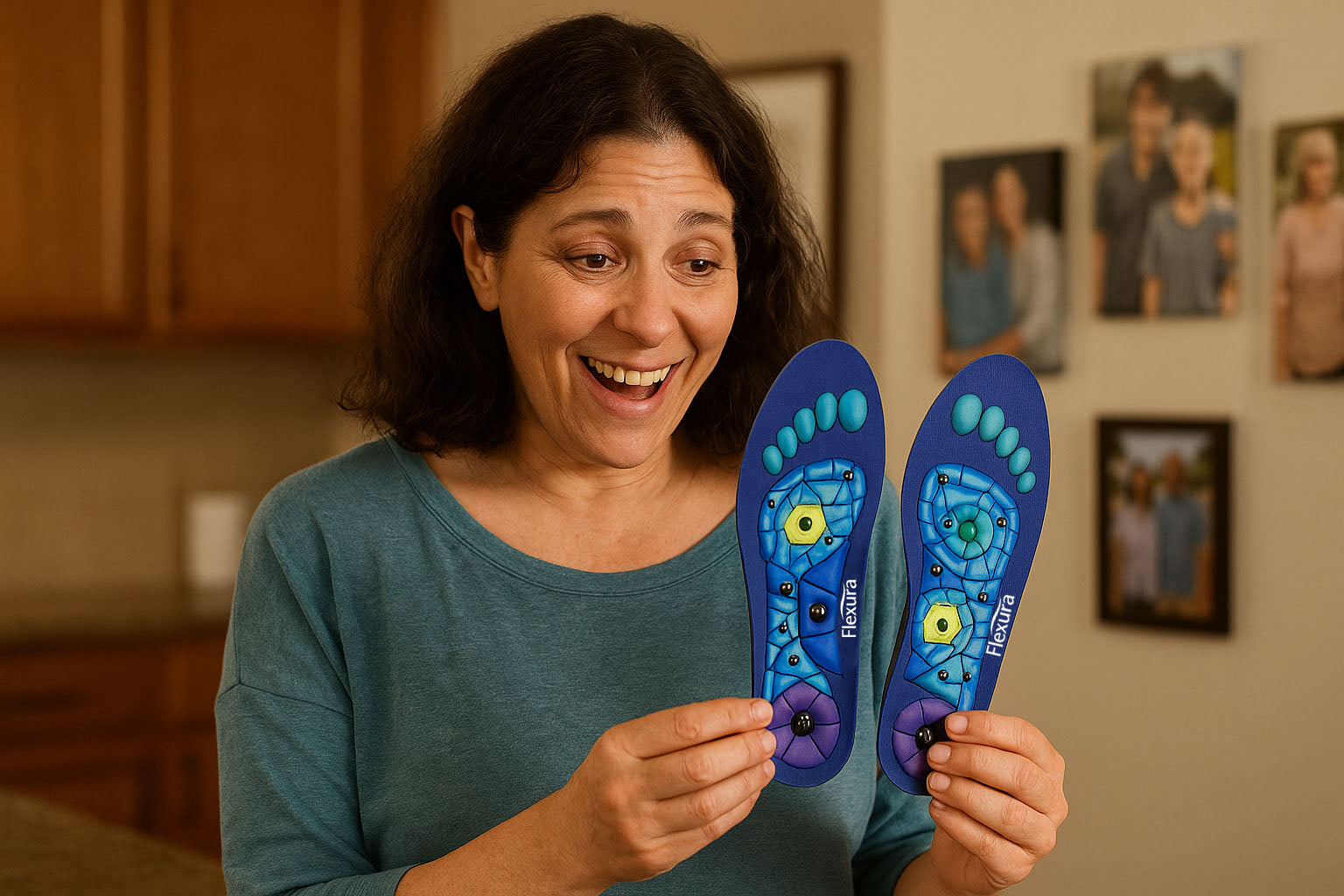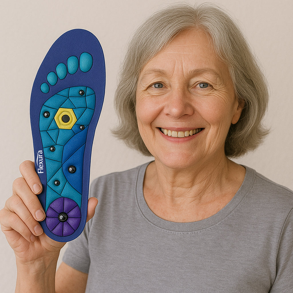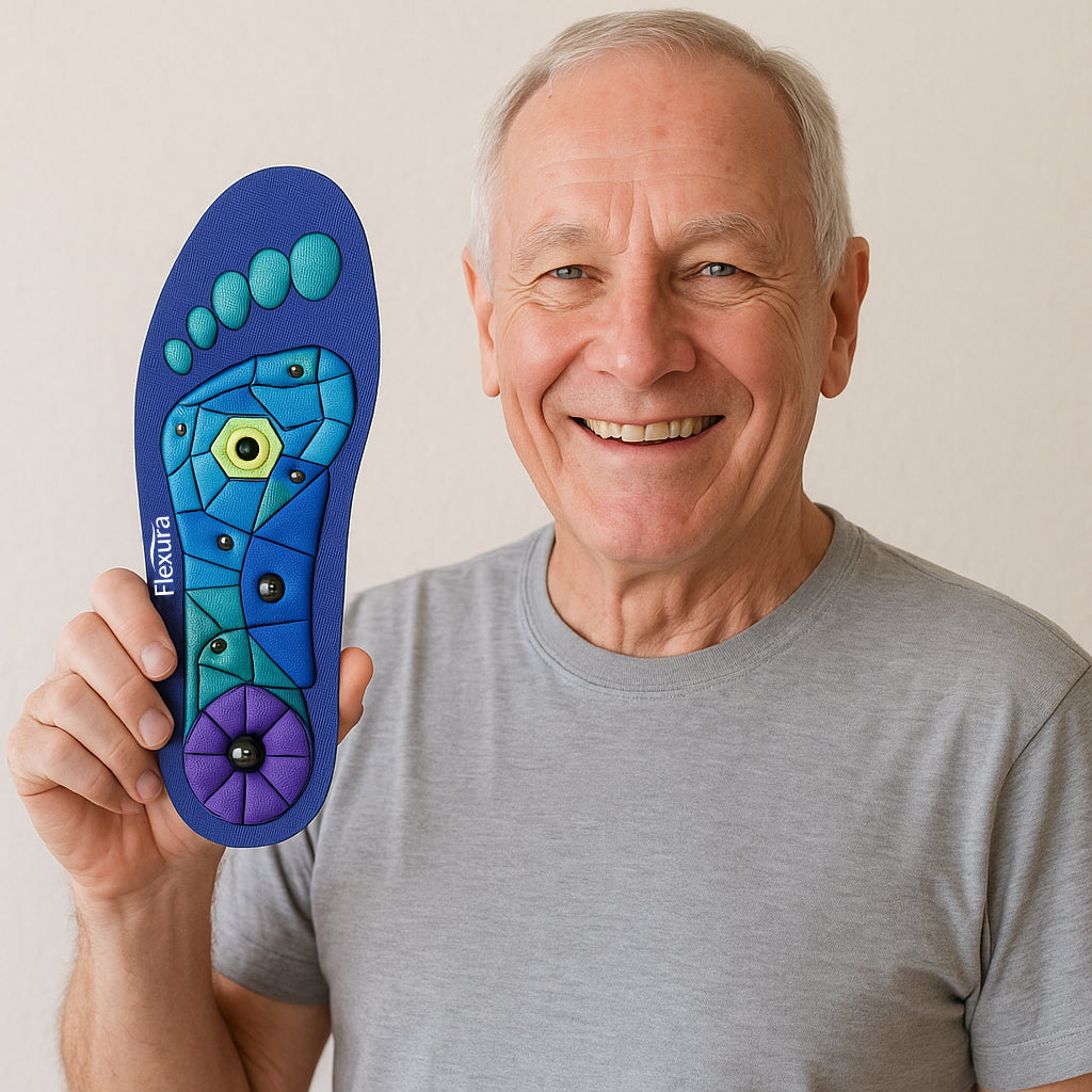 Several peer-reviewed studies indicate that Advanced arch support can improve All-day comfort and stimulate nerve endings in the feet. The embedded magnets in Flexura Insoles are strategically positioned to target key Targeted support, enhancing microcirculation and helping reduce inflammation and foot fatigue. Reflexology research suggests that applying gentle pressure to these specific points can alleviate pain not only in the feet but also in related areas such as knees, hips, and lower back.